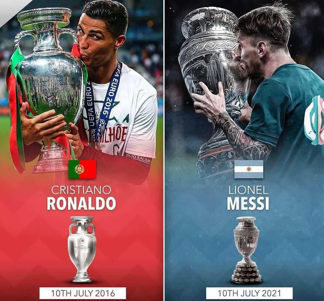 The only thing left for CR7 to be even considered in the GOAT debate was that single piece of Silverware.Even though Messi accomplished double in the international arena than Cristiano who’s 869 days elder than him.